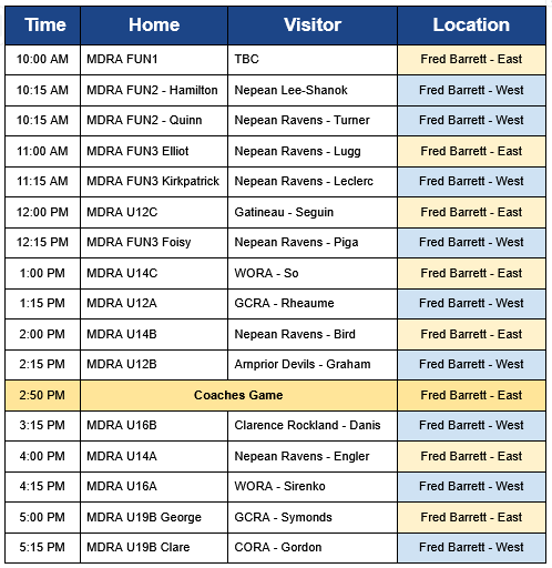 Catch regular season games from Fun2 to U19 plus the return of the MDRA Coaches game at 2:50 PM. Teams can rally together to cheer on their incredible coaches and their fellow hornets. If you are a coach and a would like to lace up and take part in this fun and competitive event, please complete the 2025 MDRA Coaches Game Sign-up form by Wednesday, November 5, 2025.